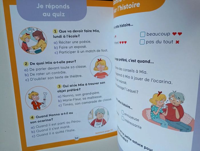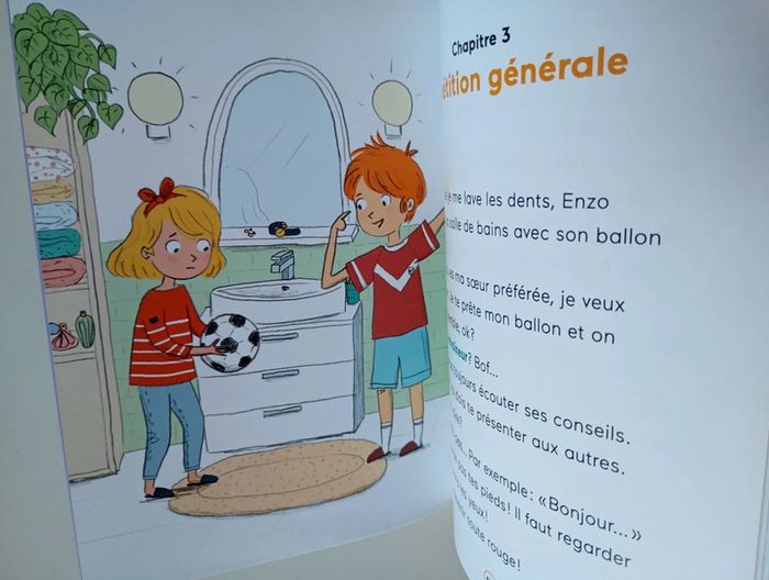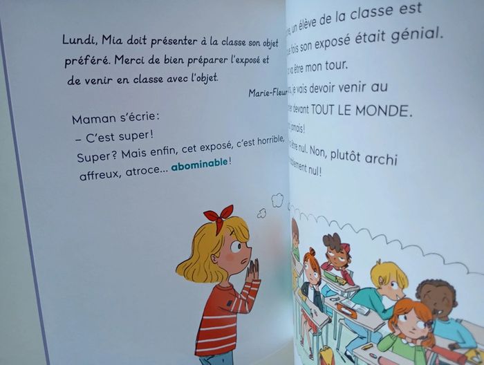 Lundi, Mia devra présenter son objet préféré à toute la classe. Elle est terrorisée: son exposé sera archi méga nul! Heureusement, Nono, son grand-père, va l’aider à surmonter sa timidité et à retrouver confiance en elle. Éditeur ‏ : ‎ Belin Jeunesse 32 pages Dimensions ‏ : ‎ 14.5 x 0.4 x 19 cm Livre en très bon état Je vends d'autres livres premières lectures #phil_peg_premièreslectures #timidité #ce1 #confianceensoi