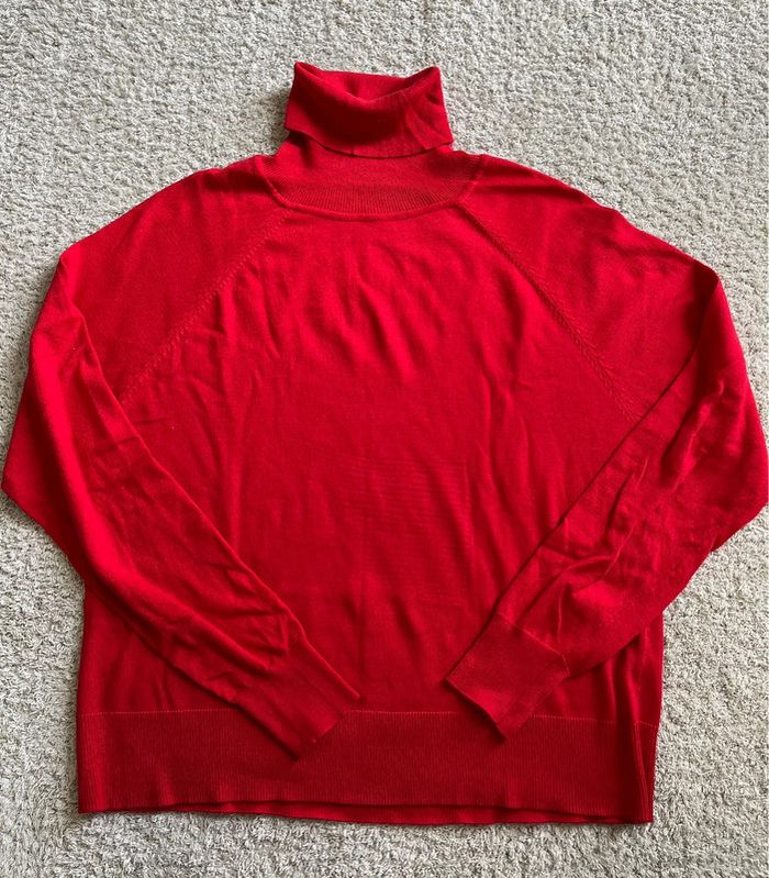 Pull col roulé couleur rouge marque Mango taille M - photo numéro 1