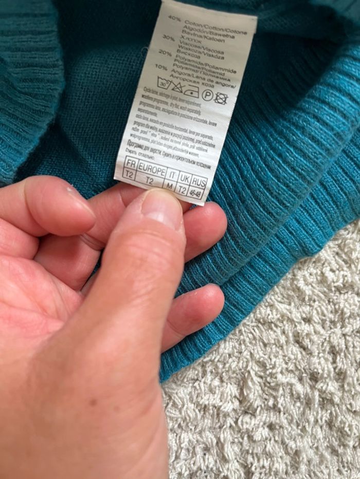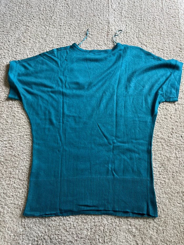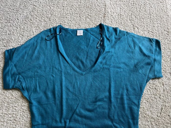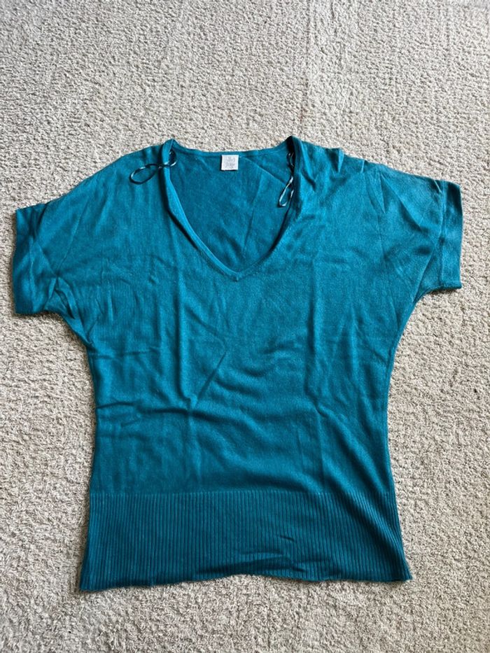 Pull léger col en V manches courtes bleu marque Camaïeu taille M - photo numéro 2