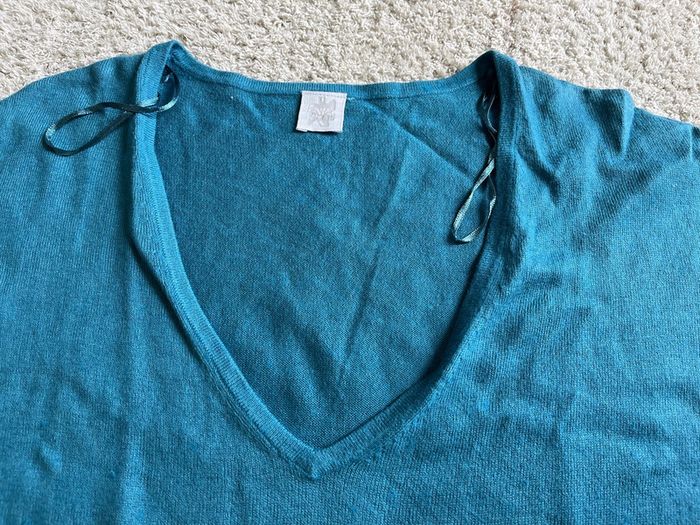 Pull léger col en V manches courtes bleu marque Camaïeu taille M - photo numéro 6