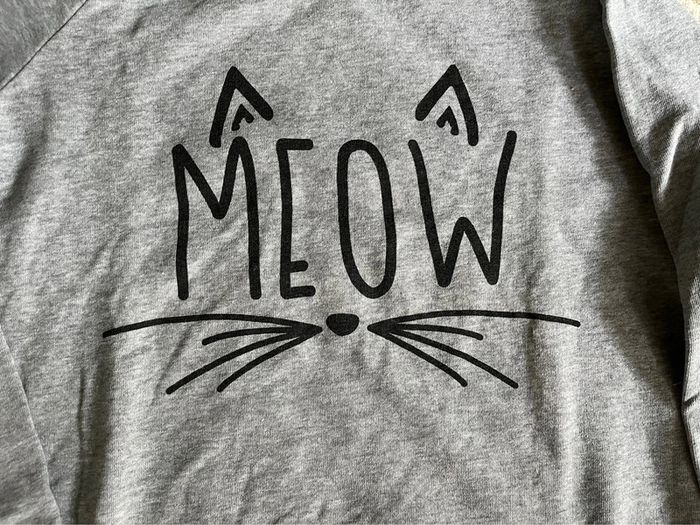 Sweat gris Dessin chat Inscription « Meow » Marque Jennyfer Taille M #marine100487_femme_m_38 #sweatgris #jennyfer
