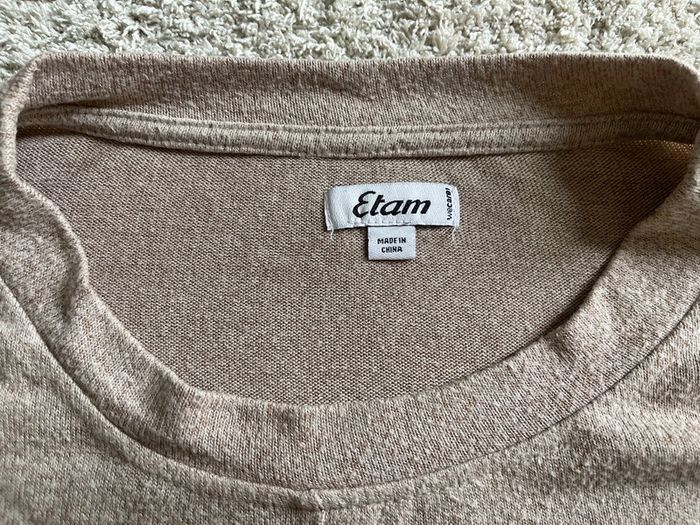 Pull marron clair Marque Etam Taille L Étiquette de lavage coupée Ouverture sur les côtés #marine100487_femme_l_40 #pulllegerfemme40 #etam