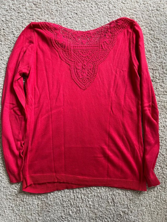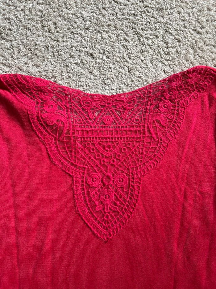 Pull léger Camaïeu rose fuchsia dentelle dans le dos taille M - photo numéro 5