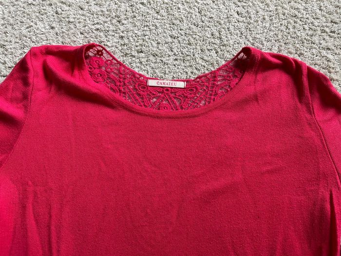 Pull léger Camaïeu rose fuchsia dentelle dans le dos taille M - photo numéro 1