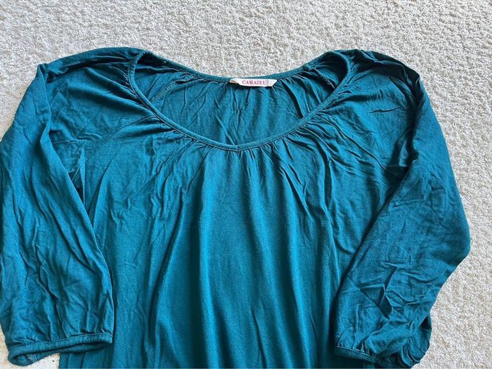 Teeshirt manches 3/4 couleur bleu canard marque Camaïeu taille XS - photo numéro 2