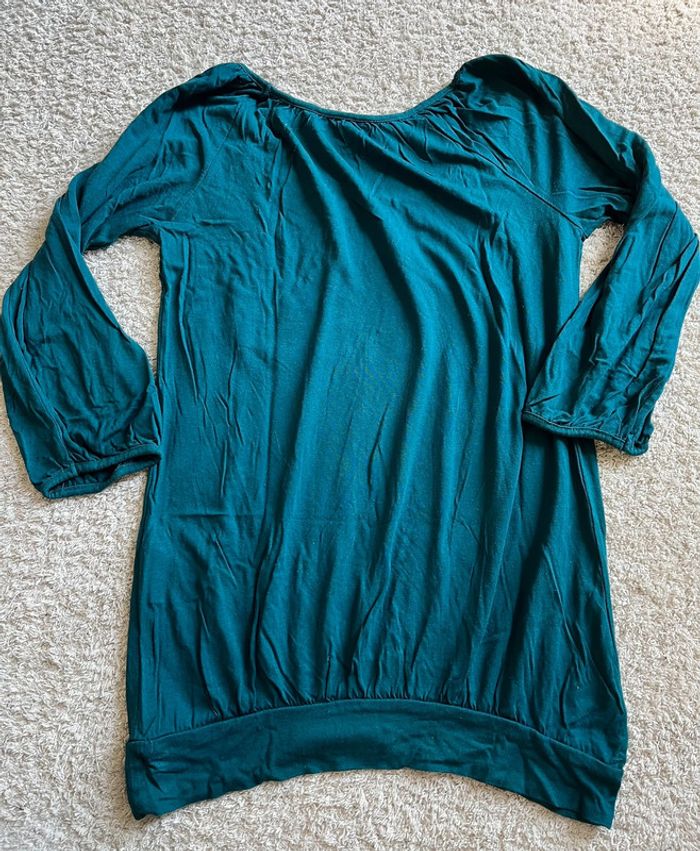 Teeshirt manches 3/4 couleur bleu canard marque Camaïeu taille XS - photo numéro 1
