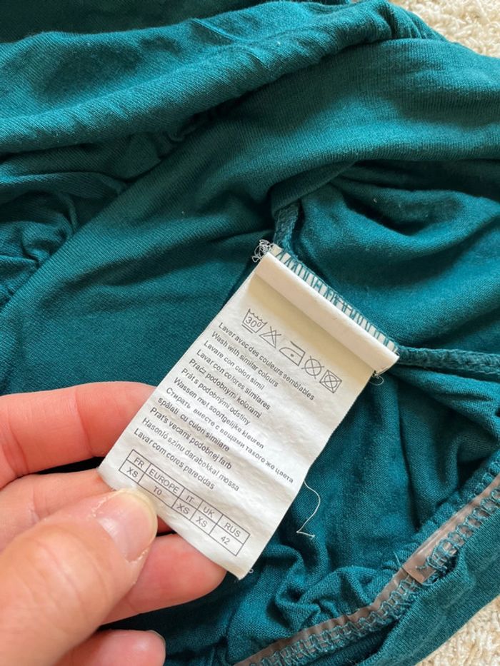 Teeshirt manches 3/4 couleur bleu canard marque Camaïeu taille XS - photo numéro 5