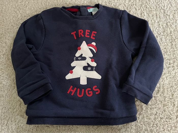 Sweat pull bleu sapin de Noël Obaïbi taille 23 mois