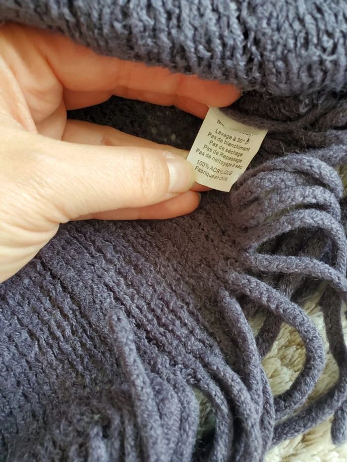 Poncho Cape en tricot bleu à franges - photo numéro 2