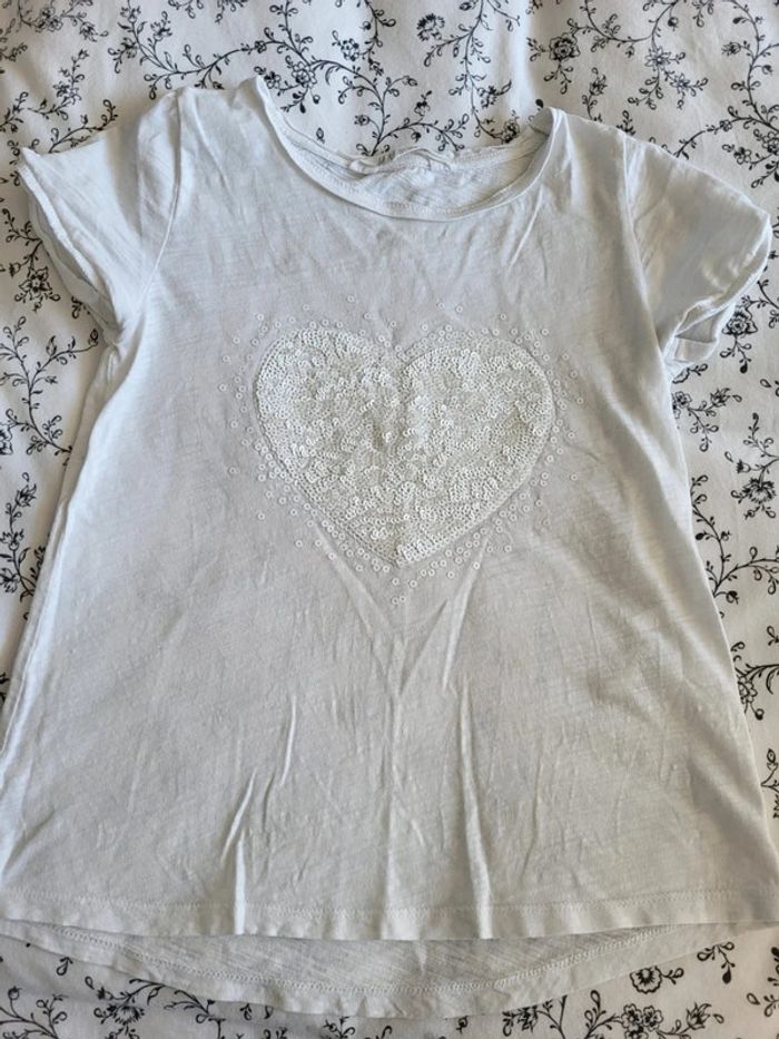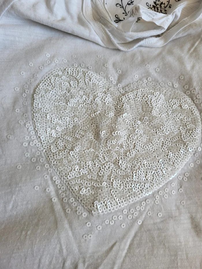 Tee-shirt blanc cœur en sequins 8-10 ans H&M - photo numéro 1