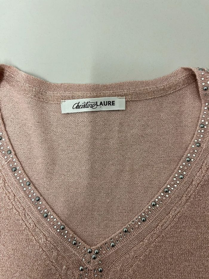 Pull rose scintillant avec strass Manche 3/4 Marque Christine Laure Taille 3 #marine100487_femme_l_40 #christinelaure