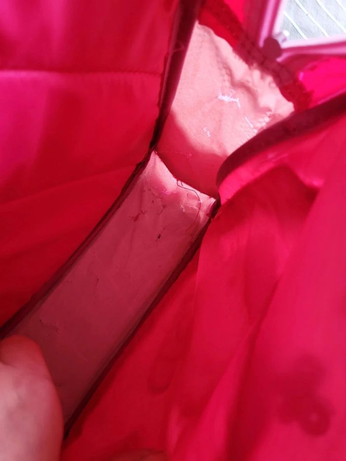 toutes les fermetures fonctionnent bien . la doublure intérieure est craquelée par endroits mais aucun trou extérieur. bretelles réglables en longueur