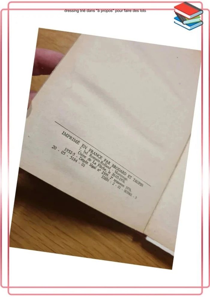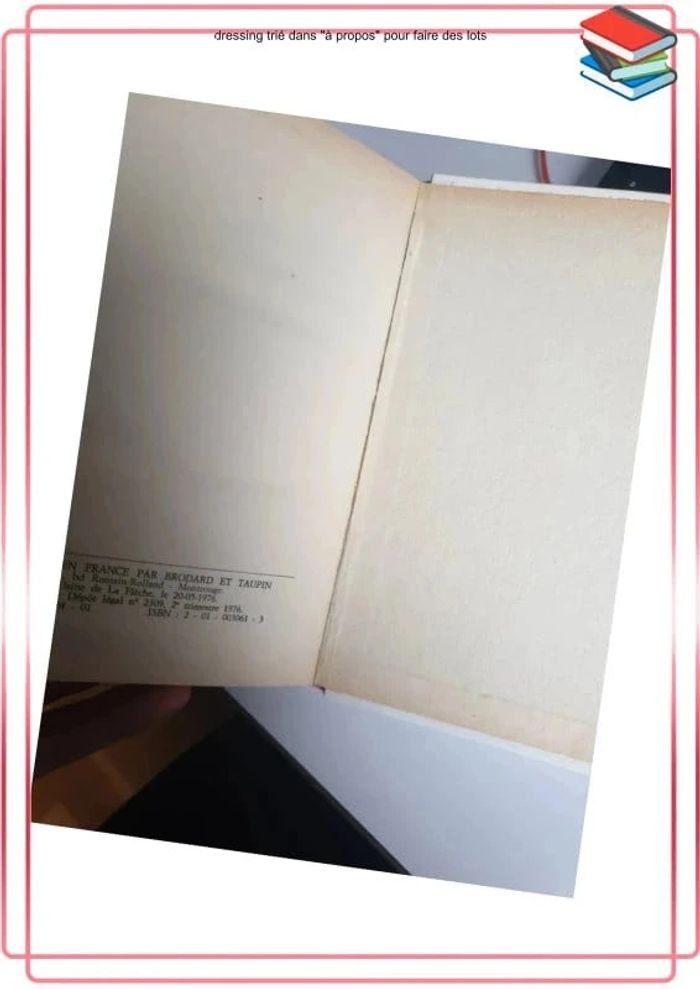 #moudry77livres juste l endroit de la tranche intérieure qui est "déchirée " entre la feuille et la couverture rigide cf photos (tout devant et tout derrière dans le livre )