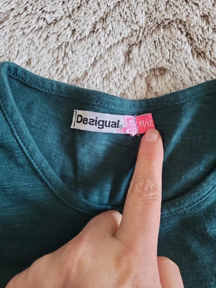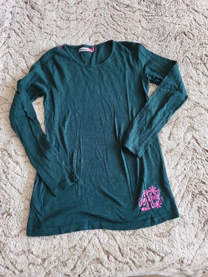 Haut tee shirt manches longues desigual 11/12 ans vert et rose