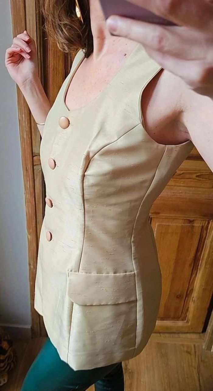 Top gilet vintage beige made in France - photo numéro 7
