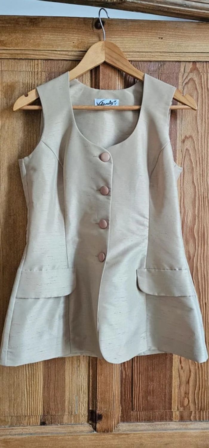 Top gilet vintage beige made in France - photo numéro 1