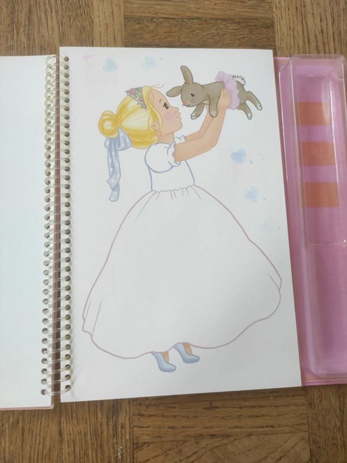 24 pages a colorier. Jamais faites, juste une avec qq tampons ( voir photo).Manque crayons et tampons.