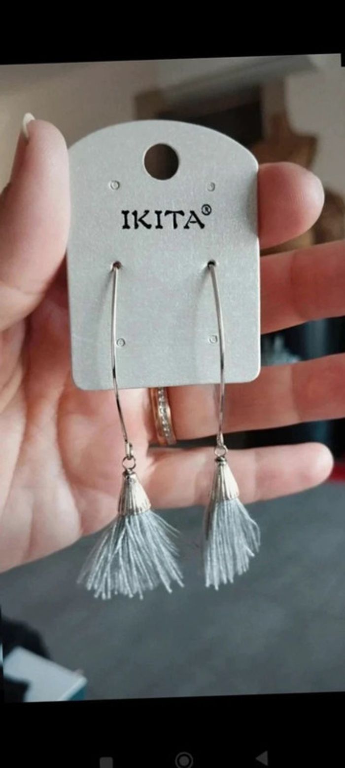 Boucles d'oreilles  pompons  gris  ikita - photo numéro 4