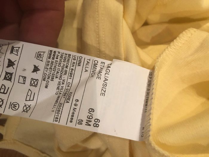 Tee shit benetton jaune. 6  9 mois - photo numéro 4