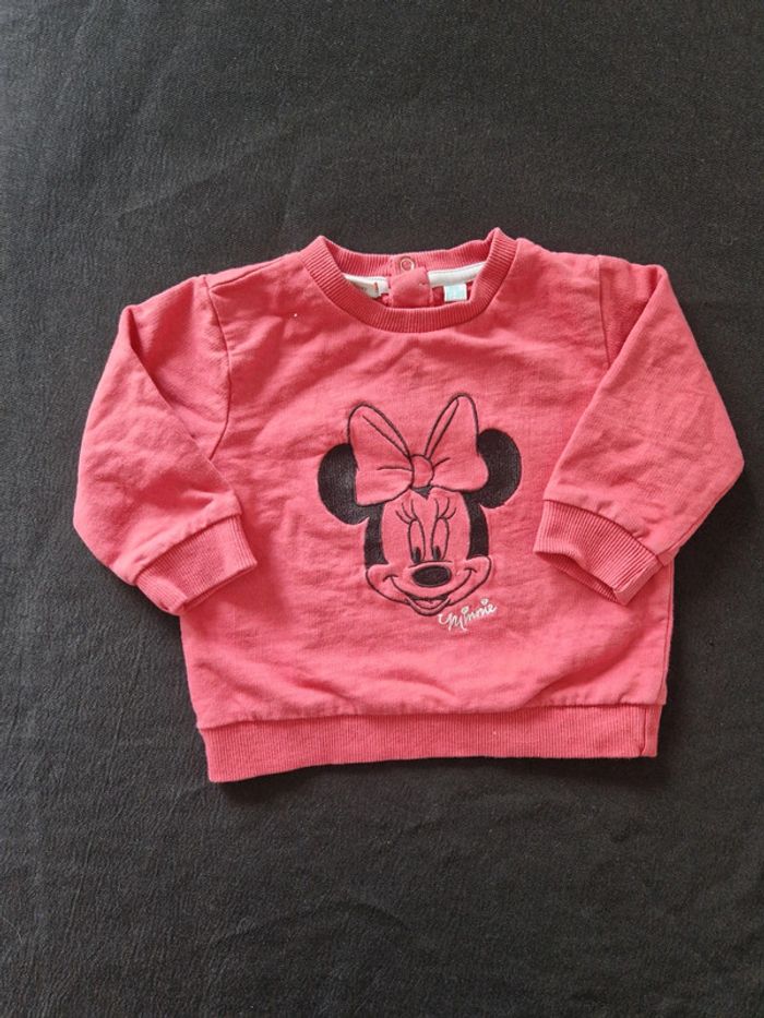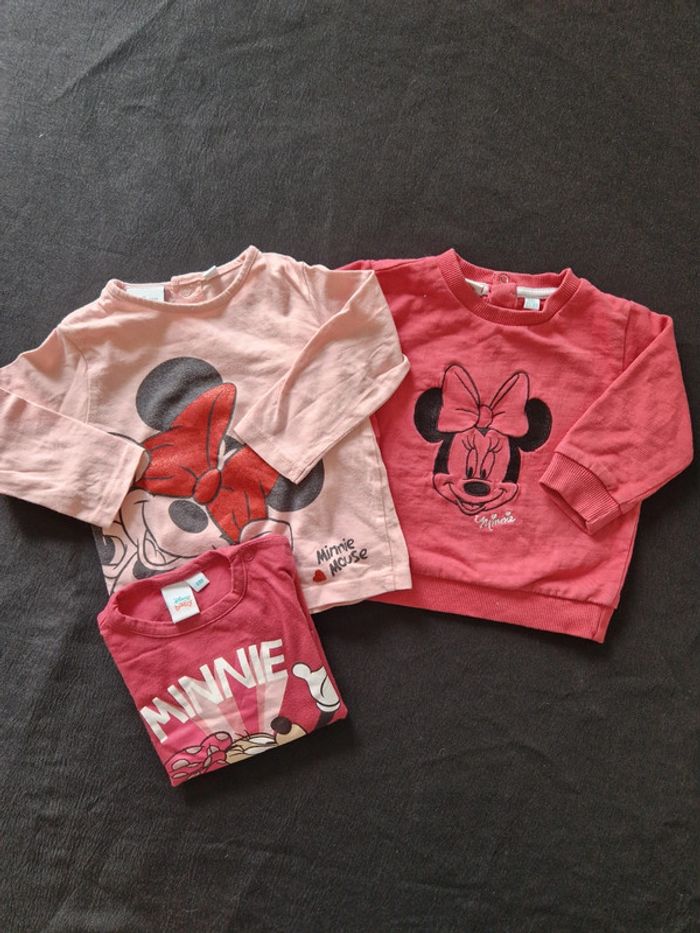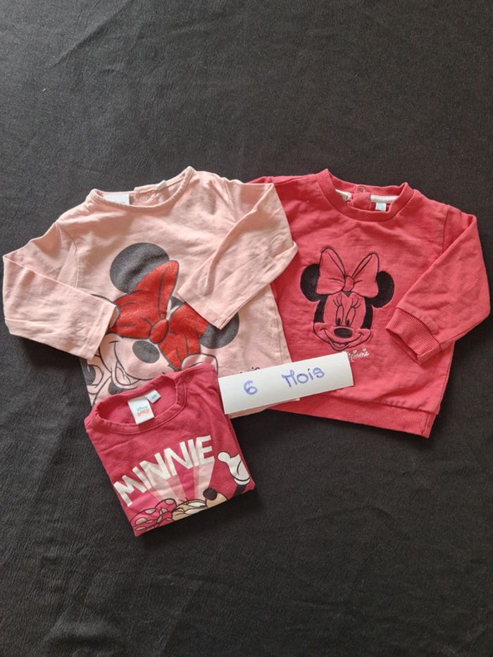 2 tee shirts manches longues Minnie : ↪️ rose clair ouverture complète dans le dos ↪️ rose foncé boutons au col 1 pull Minnie