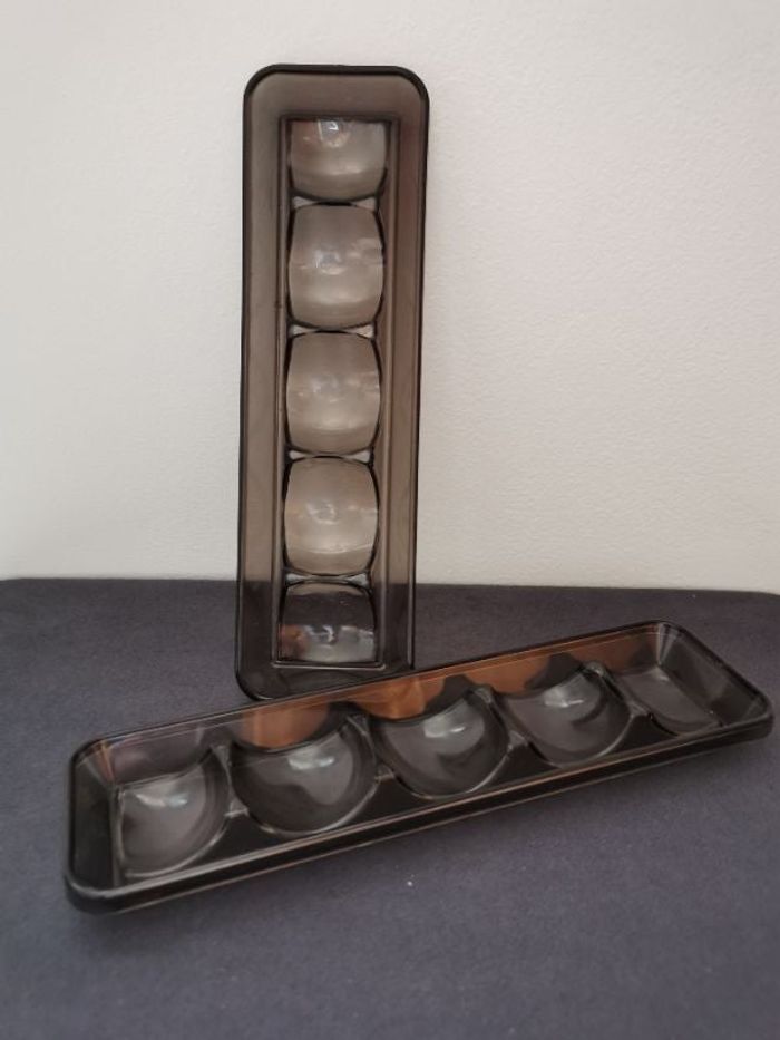 Lot de 2 casiers pour ranger les œufs. 5 places chacun Plastique transparent marron 23 cm x 6.5 cm Très peu utilisés, en très bon état. #porteoeuf #boiteaoeuf #rangementfrigo #accessoirefrigo #mar-taymaison #martaytable