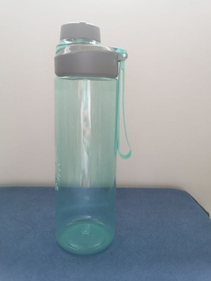 Gourde en plastique translucide vert clair, pour voir aisément le contenu. Grande ouverture (6 cm) permettant un remplissage et un nettoyage facile, et la possibilité de mettre à infuser à froid, feuilles de menthes, fruits, ... Bouchon à vis avec joint d'étanchéité et grille. Laisse passer le liquide mais pas les "solides" qui infusent. Sur le dessus du bouchon, une ouverture en forme de pipette un peu large pour boire directement ou verser le contenu dans un verre. Cette partie est fermée par bouchon à vis plus petit, étanche avec joint silicone. Voir photos. Poignée de transport en silicone intégrée au bouchon. Contenance 800 ml. Hauteur totale 26 cm, diamètre base 7.5 cm Très peu utilisé en très bon état. Autre modèle 600 ml même caractéristiques vendu dans mon dressing. Bouchons interchangeables, même ouverture. Possibilité de faire un lot à prix réduit. #gourde #bouteille #bouchonàfiltre #infuseur #gourde800ml #bouteillelégère #martaytable #martaymaison #martaydeco