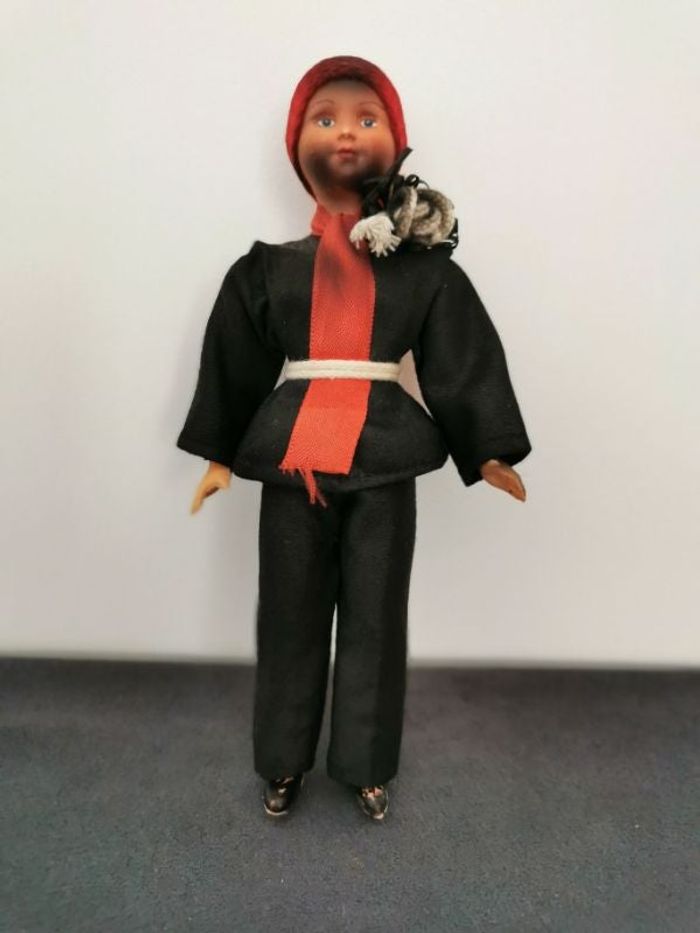 Poupée de collection, jeune ramoneur avec échelle dans le dos, corde et hérisson sur l'épaule. Hauteur 18 cm #poupeedecollection #petitepoupée #poupéeramoneur #martayenfant #martaymaison #martaydeco