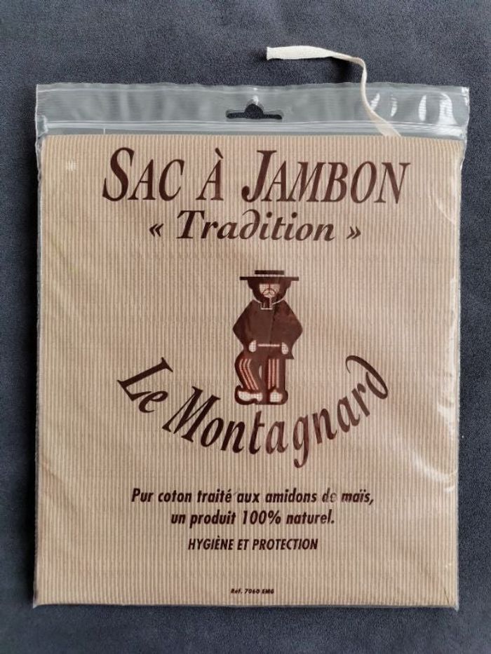 Sac à jambon Tradition - Le Montagnard Singalette de coton, avec un apprêt 100% naturel aux amidons de maïs Aucun traitement chimique. Le jambon est protégé et respire ; il reste sain même entamé Prix d'achat 9.50 Neuf dans son emballage d'origine Dim 60x70 cm #sacàjambon #protectionaliment #purcoton #zerotraitementchimique #tradition #lemontagnard #mar-taytable #mar-taymaison