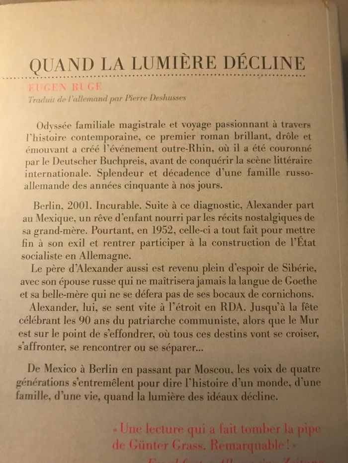 Livre Quand la lumière décline 423 pages