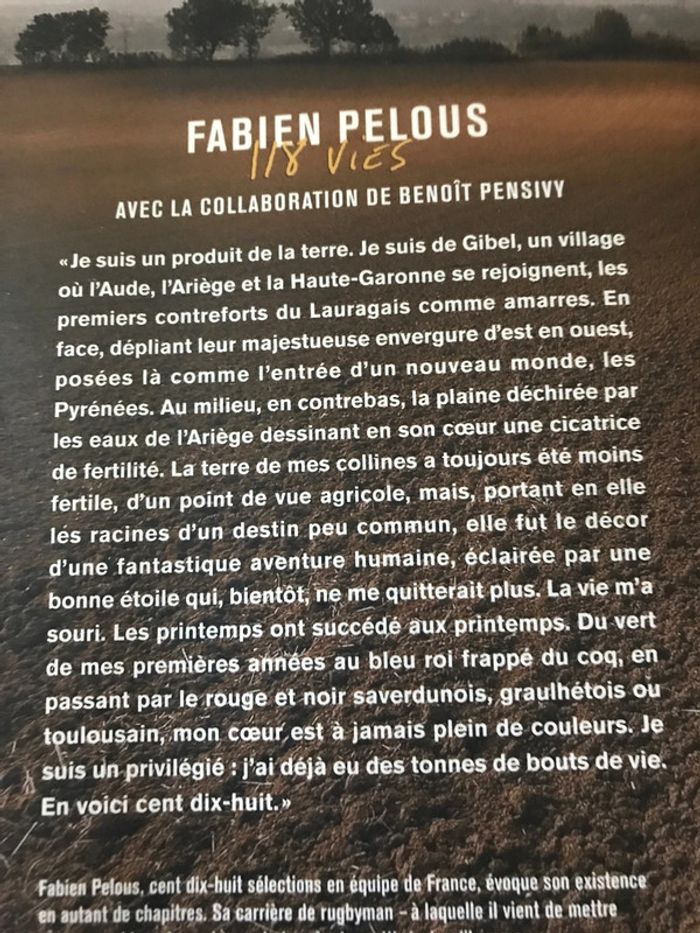 Livre Fabien Pelous 118 vies 285 pages