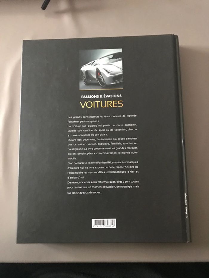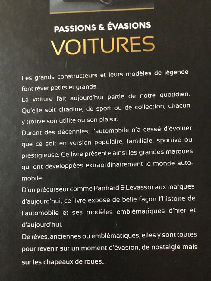 Livre Voitures passions et évasions 302 pages 24x32 Un poster en cadeau 🎁 ⚠️ manque du papier 1 ère page de garde 1.5 cm x 0.5 cm