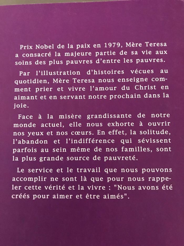 Livre L’hymne au service de mère Teresa