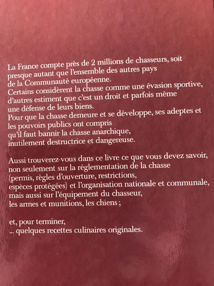 Livre La chasse 246 pages Très bon état vu l’âge 1986