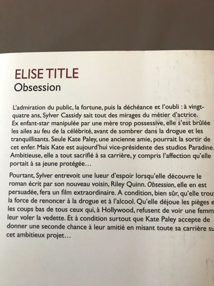 Livre Obsession 449 pages