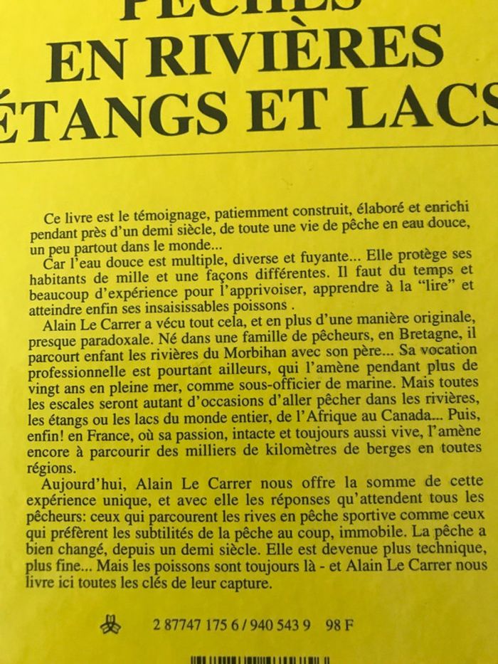 Livre toutes les pêches en rivières étangs et lacs
