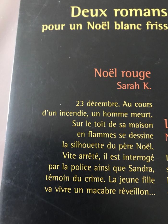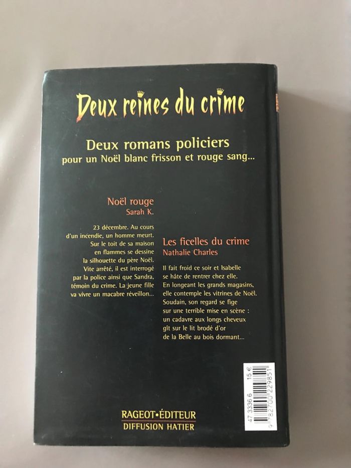 Livre Deux reines du crime (2 histoires ) Noel rouge de Sarah K 169 pages Les ficelles du crime Nathalie Charles 108 pages 🩸petites taches sur la première page 📄