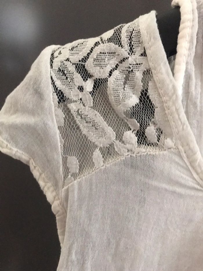 Débardeur 2 en 1 blanc Débardeur blanc dessous Tunique dessus avec dentelle Equivalent 38 Aisselles à aisselles 44 cm