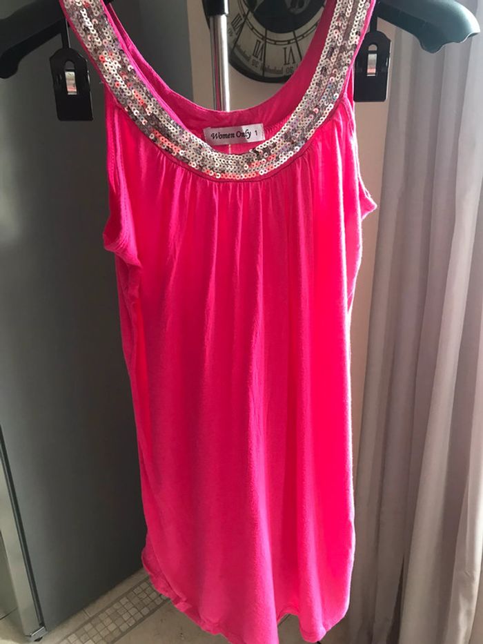 Débardeur rose encolure paillettes - photo numéro 1