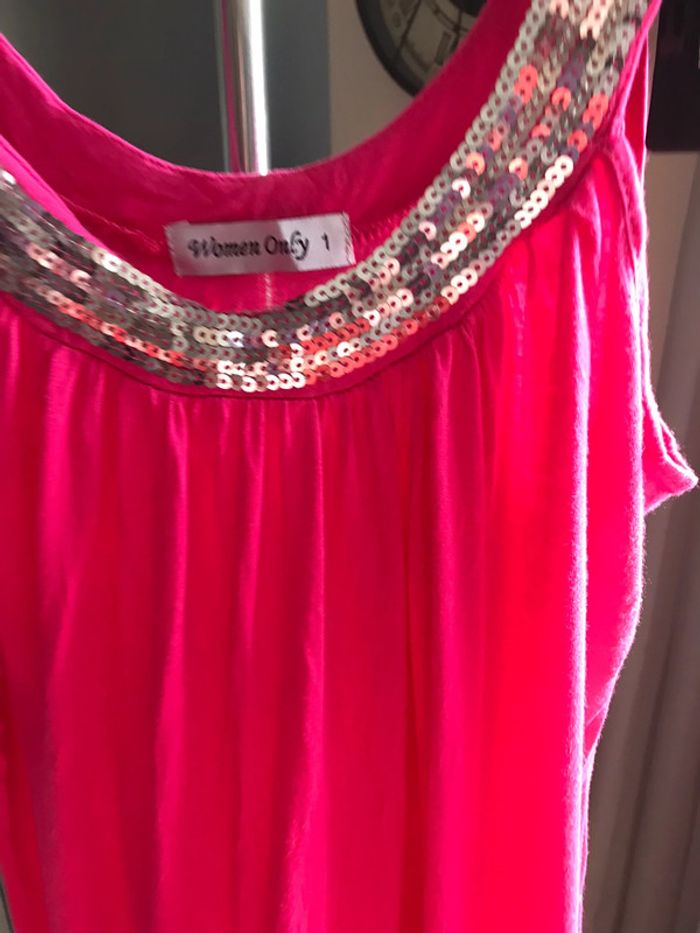 Débardeur rose encolure paillettes - photo numéro 2
