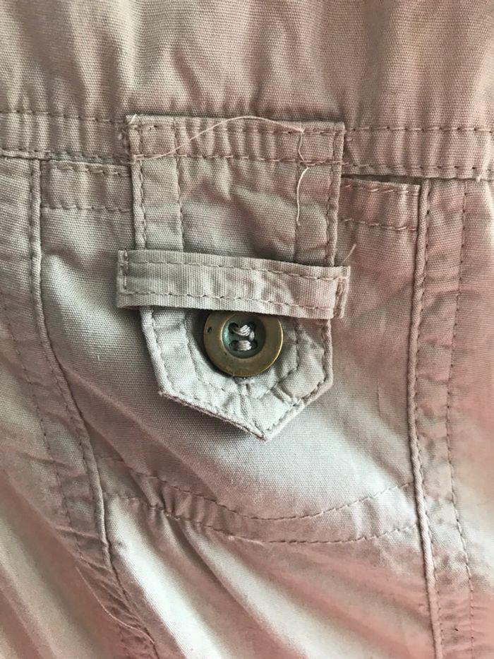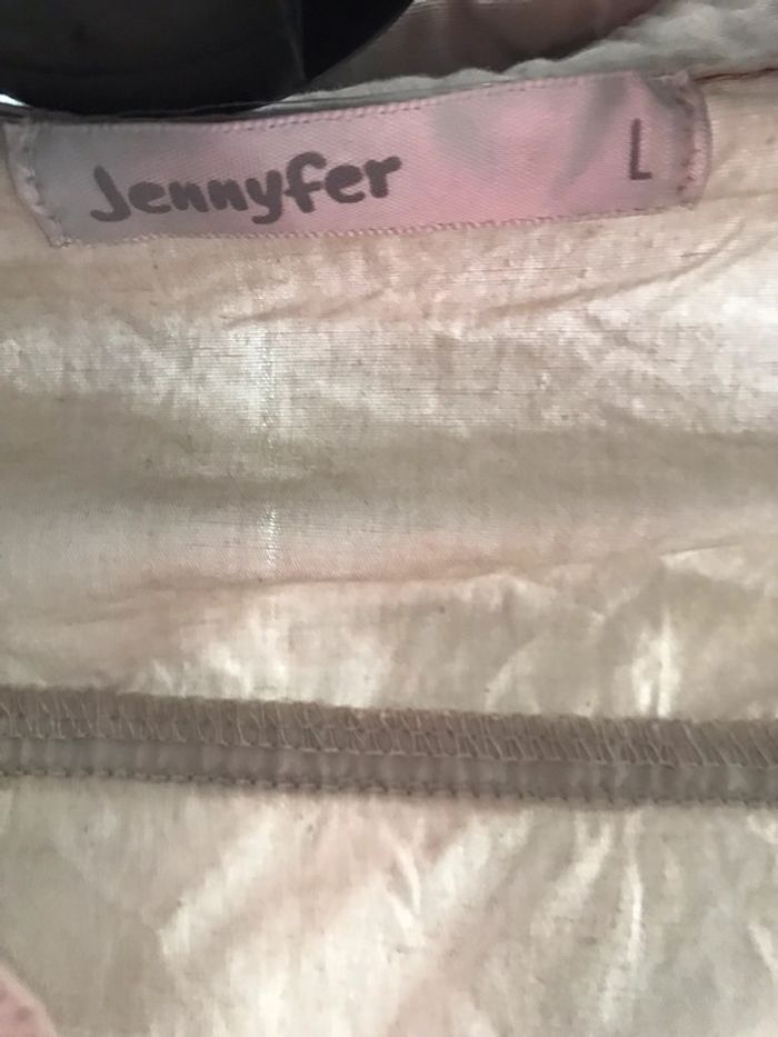 Robe crème Jennyfer Boutons épaulettes Passants pour ceinture Fermeture par 8 boutons Col pointu Broderie sur les manches et sur 1 volant à la base 3 volants à la base Largeur épaules 41 cm Aisselles à aisselles 46 cm Hauteur 82 cm