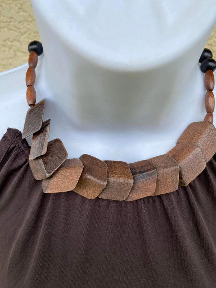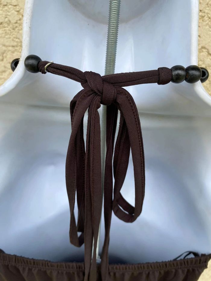 Robe marron dos nu avec col bijoux Promod Neuve jamais porté Col bijoux Taille 1 équivalent 36 Ceinture lien avec perles Elastique dos Lien pour nouer autour du cou avec perles Pans derrière plus long que devant Aisselles à aisselles 33 cm Bas 76 cm Hauteur dos 108 cm Hauteur 100 cm