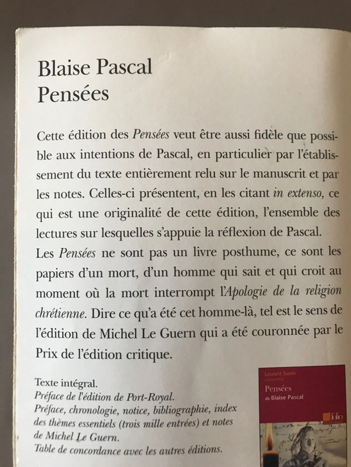 Livre Pensées de Blaise Pascal