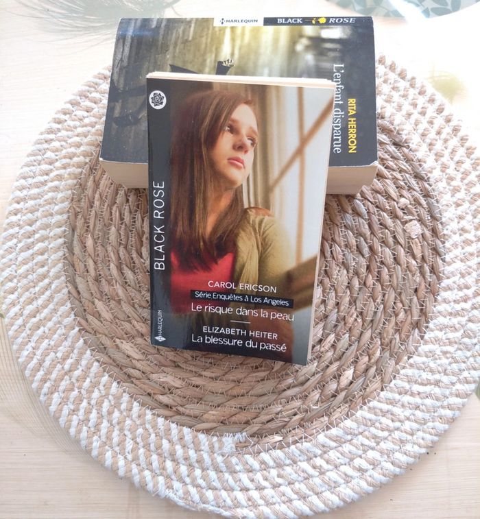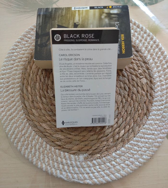 Livre Harlequin collection Black Rose numéro 692 série Enquêtes à Los Angeles "Le risque dans la peau" de Carol Ericson "La blessure du passé" de Elizabeth Heiter Tranche cassée et coup sur la quatrième de couverture, donc état satisfaisant #livrejustine8059