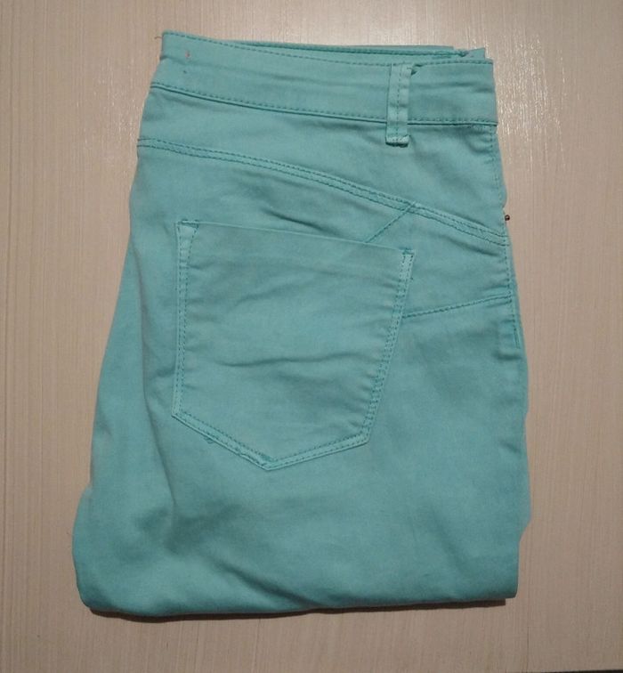 Jean couleur vert menthe Taille 38 Couleur un peu passée à certains endroits (vire au blanc) voir derniere photo pour l'exemple #vetementfemmejustine8059 #femmetaille38justine8059