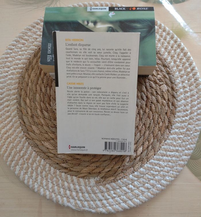 Livre Harlequin collection Black Rose numéro 446 1er septembre 2017 "L'enfant disparue" de Rita Herron "Une innocente à protéger" de Cassie Miles Tranche cassée, abîmé sur les côtés (voir "défauts" sur les photos) #livrejustine8059