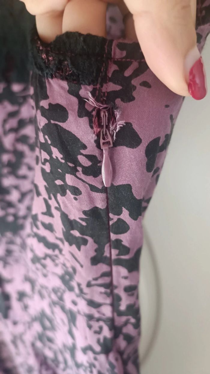 Usato un paio di volte, molto leggero e fresco, pizzo sul davanti. Ha un piccolo strappo da ricucire all'altezza della cerniera, indossato non si nota