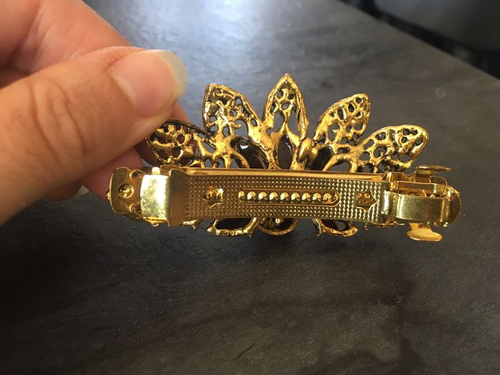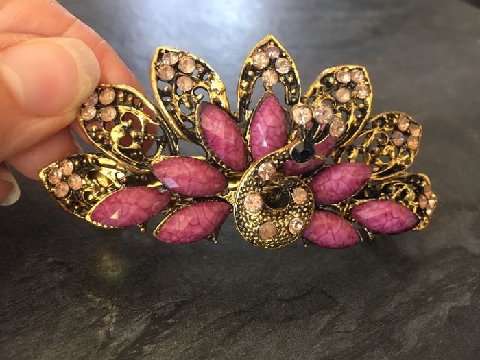 Barrette neuve pour cheveux Dorée avec motif paon et strass Jamais utilisée car j’ai les cheveux courts 😉 C’est un cadeau qui vient de loin...