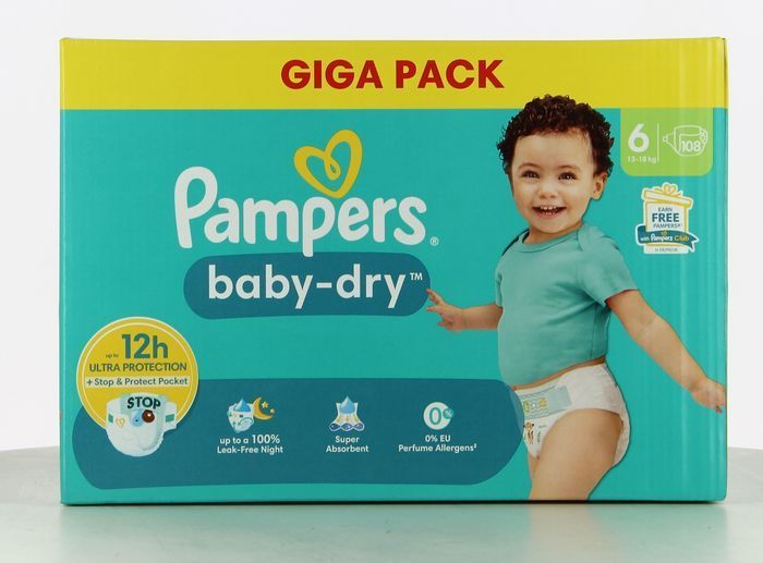 Lot de 108 Couches Pampers Baby Dry 13-18KG Taille 6 Neuf