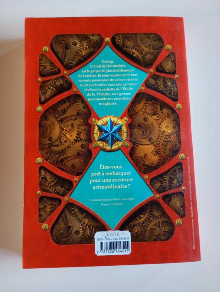 George, 3e Lord de Devonshire, est le garçon le plus malchanceux de Londres. Pourquoi ? 1. Sa mère est morte en lui donnant naissance. 2. Il a perdu absolument tous ses proches avant ses dix ans (sa gouvernante s'est étouffée avec un caramel, son père s'est tué dans un accident de patins à roulettes, et les rares domestiques qui restaient se sont enfuis sans demander leur reste). 3. Sa seule compagnie est un vieux valet muet, qui vient également de disparaître. 4. Il comptait vendre son unique possession de valeur : la carte au trésor de son grand-père, mais celle-ci s'est volatilisée (avec le valet ?) Place à Ada Byron, sa jeune voisine, avec son franc-parler, son sens de l'aventure et ses inventions extraordinaires. Avec son fabuleux oiseau mécanique, elle emmène George sur les traces du voleur, et sans doute celle du trésor, la mystérieuse étoile de la victoire ! Éditeur ‏ : ‎ Albin Michel 352 pages Âge de lecture ‏ : ‎ Dès 8 ans Dimensions ‏ : ‎ 14.5 x 2.9 x 21.5 cm Livre en excellent état
