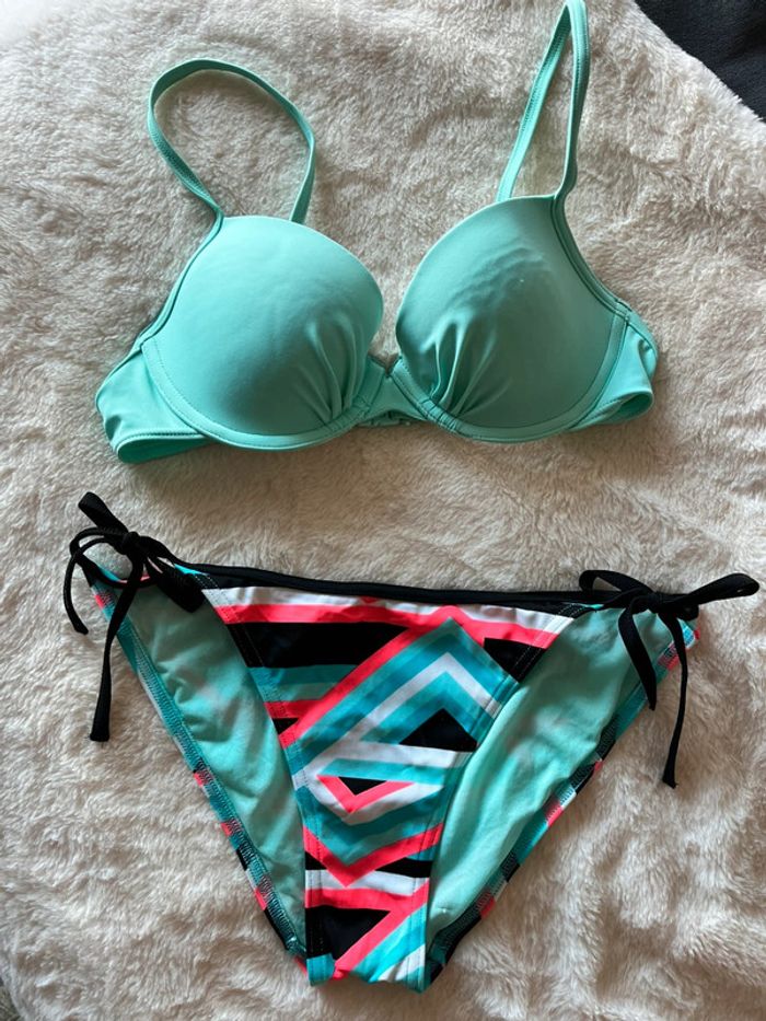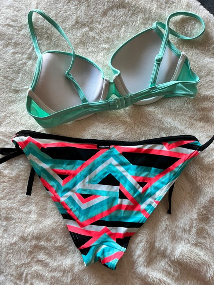 Maillot de bain 2 pièces Tribord – Haut bleu push-up & Bas à motifs géométriques – Taille 34